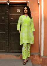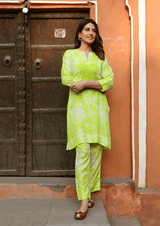 Step into understated elegance with our Lime Green Printed Kurta Set. This beautiful ensemble features the finest cotton silk fabric, known for its soft, airy texture and luxurious feel. The lime green hue brings a touch of fun, while the delicate gota embellishments add a hint of sparkle and refinement.