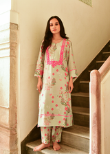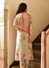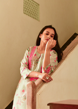 The relaxed straight-cut kurta paired with coordinated printed pants creates a graceful silhouette—perfect for daytime occasions and intimate celebrations. A timeless blend of artisanal craft and modern ease.
