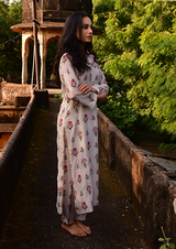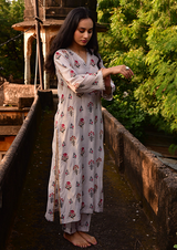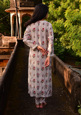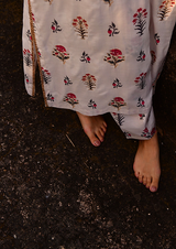 Elegant, airy, and nostalgic — this ivory printed kurta set is a gentle tribute to the simplicity of summers gone by. Crafted in a soft cotton-silk blend, it’s designed for comfort with a touch of quiet luxury.