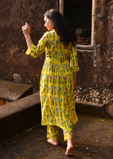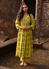 A harmonious blend of tradition and ease, this yellow floral kurta features hand-drawn blooms that evoke sunlit gardens pressed in time. Crafted from soft cotton silk, it lets you move and breathe with ease, offering both comfort and luxury.