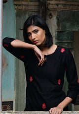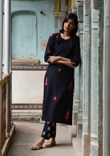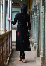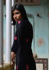 This set features hand embroidery work and is paired with hand embroidered pants.