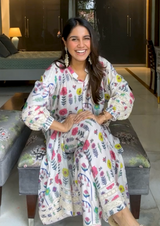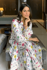 The Ivory Co-ord is crafted in soft and breathable cotton silk with florals in varied shades.
