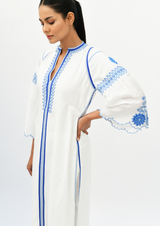 A v neck with thread embroidery on the neckline adds just the right amount of drama.