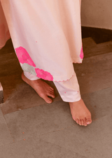 Step into traditional embrace with our Kamal Gulabi Set. This ensemble features the finest Chanderi silk fabric, known for its soft, airy texture and luxurious feel.