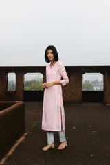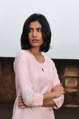 The set features hand appliqué work on the sleeves with a relaxed straight fit. This piece is all about a hassle free affair with clothing, wherever you are.