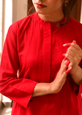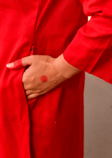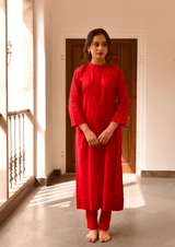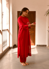 Paired with a comfortable pants, this kurta set is a versatile piece that exudes both traditional and contemporary style. The vibrant hue adds a touch of opulence, perfect for a variety of occasions.