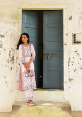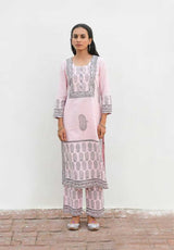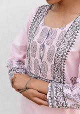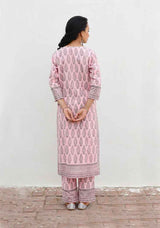 A pink straight kurta printed in Indian motifs, tailored in a straight silhouette with highlights of sequins detailing.