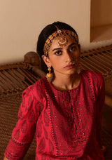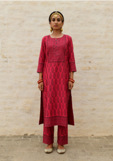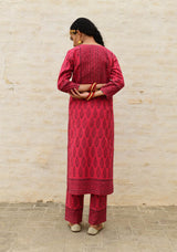 A red straight kurta printed in Indian motifs, tailored in a straight silhouette with highlights of sequins detailing.