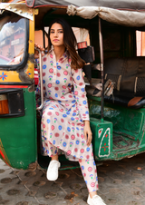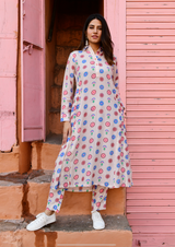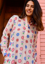 The Opal co-ord set, is crafted in a contemporary floral print. It is finished with an open front and pleating detailing.