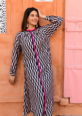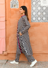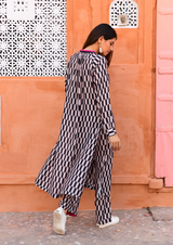 The Rani set featuring a vibrant print that speaks summer with a play of refreshing hues, adding a lively charm to the ensemble.