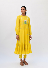 Featured here is a thread hand-embroidered set, a soothing summer shade~ yellow.